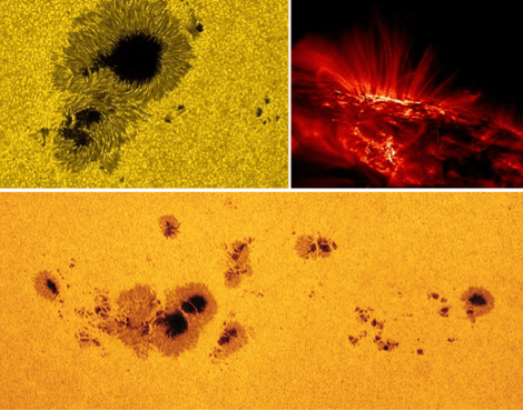 When the magnetic force is stronger than turbulent pressure, the solar magnetic field directs plasma motion along its lines. This prevents convection, leading to cold spots on the solar surface known as sunspots. These sunspots can reach diameters of up to 160,000 km and last from a few days to a few months (D. D. H. Hathaway, 2015). They appear dark due to their lower temperature, which is caused by inhibited convection. Their large size and contrast makes them easily visible from Earth.