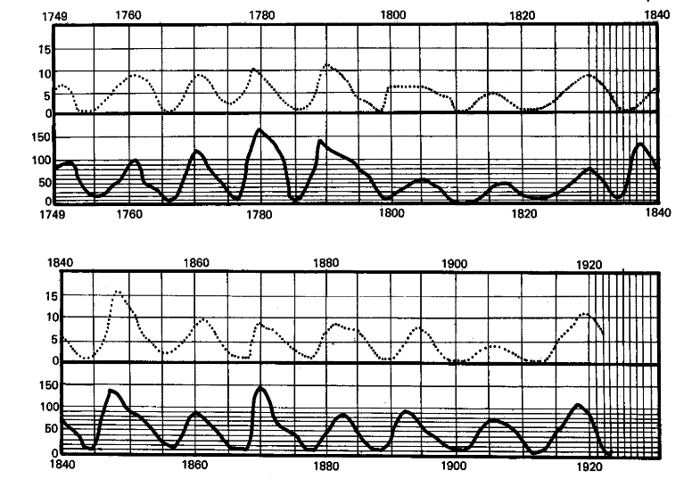 Solar effects on Earth vary in cycles. These cycles were connected to human behaviour by Russian space biologist Alexander Tchijevsky already in the 1920s.